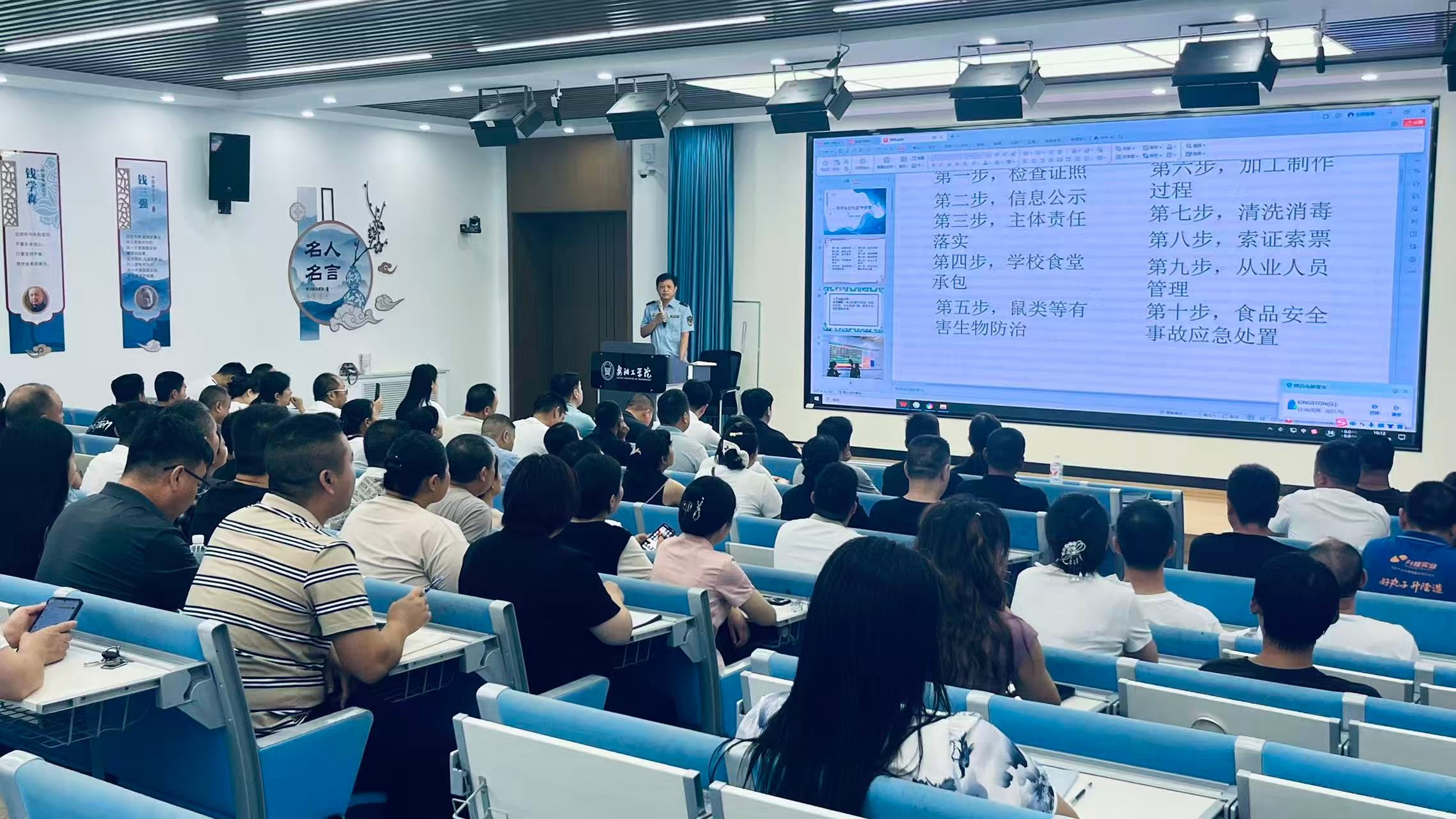 安阳高新区市场监督管理所所长毛为民就校园食品安全开深入讲解。毛所长通过案例剖析,结合操作细节,从食材采购、验收、加工、餐具消毒到从业人员健康管理等环节,进行了详细的指导。